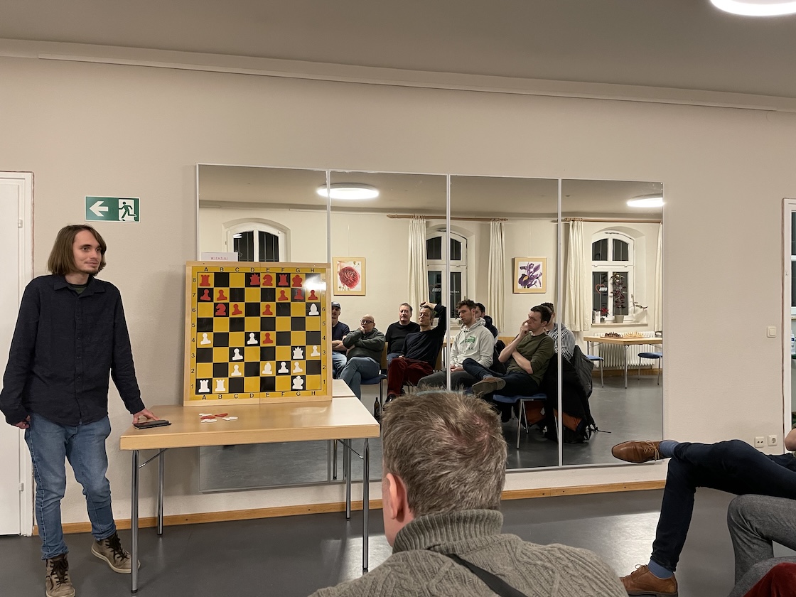 Nachdem es alle hoffentlich gesund und mit neuen Vorsätzen versehen ins neue Jahr 2026 geschafft haben, geht es am Mittwoch, 7. Januar auch wieder mit dem Schachbetrieb im Roten Turm los. Christian Parsch hat angekündigt, dass er uns Partien, die er im Staufer Open in Schwäbisch Gmünd (2.–6. Jan.) gespielt haben wird, zeigen will. Wir wünschen ihm möglichst viele Gewinnpartien.