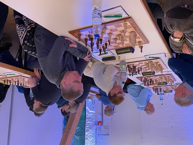 Dabei werden unsere Teilnehmer(innen) das Turnier recht unterschiedlich in Erinnerung behalten. Während es für Jakob (4,5 Punkte, DWZ-Steigerung um 48 Punkte!) und Julia (3,5 Pkt., + 22) sehr gut lief, musste Vanessa (3 Pkt., –47) diesmal leider Lehrgeld zahlen. Auch für unsere VM-Gäste lief es unterschiedlich: Michael Galow (4 Pkt., +32), Ulf Hennig (3,5 Pkt, +32), Jürgen Dreisch (3 Pkt., – 31).