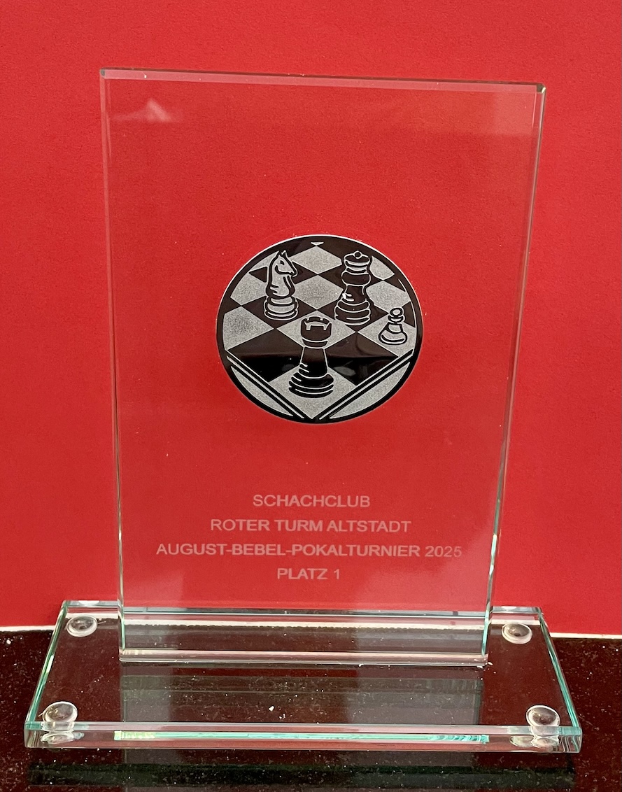 Nach dem Halbfinale war klar: Es wird einen neuen Namen auf der Ehrentafel, auf der die Gewinner des August-Bebel-Pokalturniers seit 1975 verzeichnet sind, geben: Jörg Günther oder Friedrich Grunert (FC Bayern München). Bis nach Mittternacht dauerte es, bis Jörg mit den schwarzen Steinen seinen Gegner in einem spannenden Springer-Endspiel besiegen konnte; Friedrich musste sich mit dem 2. Platz trösten – auch das keine geringe Leistung. Die Plätze 3 und 4 gingen an Florian Ries und Stefan Krämer. Die beiden DWZ-Preise erhielten Dirk Kampfmeier (SK Tarrasch), der ein tolles Turnier gespielt hatte, und Fabian Grede (RTA).