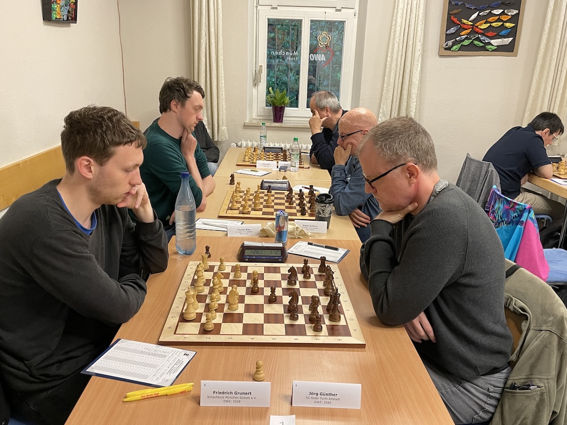 Am Freitag, 16. Mai, startete das Rahmenprogramm zu den zur Zeit im Gasteig in München stattfindenden Deutschen Schachmeisterschaften mit einer Simultanvorstellung des GM Pavel Eljanov an 20 Brettern. Zwei Bretter waren vom Roten Turm besetzt: Christian Parsch, der dem Großmeister ein Remis abtrotzte, und Jörg Günther, der bis zum Schluss durchhalten konnte und schließlich alleine gegen Eljanov bestehen musste.