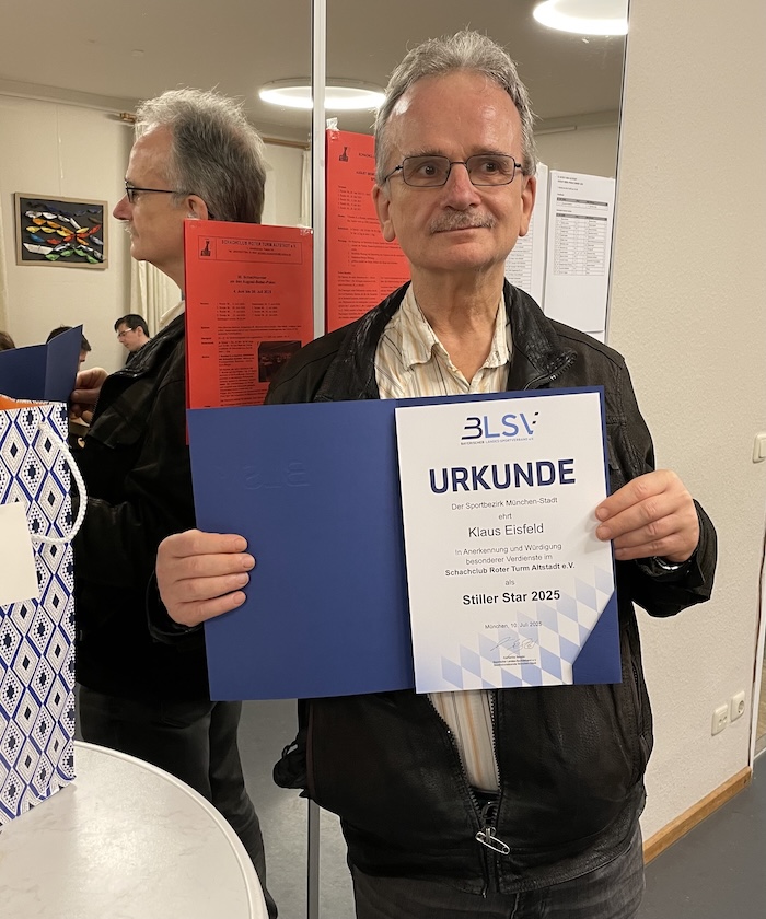 – am 18.05.2025 ein 5-rundiges Chess960-Turnier, (Unter den Teilnehmern: Andreas Beyerlein)