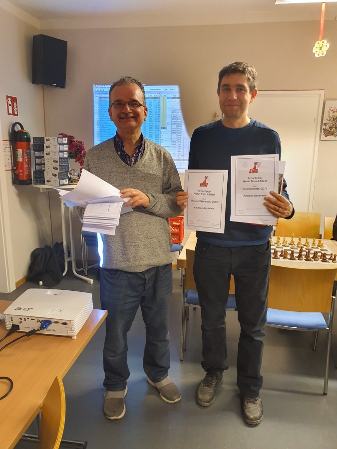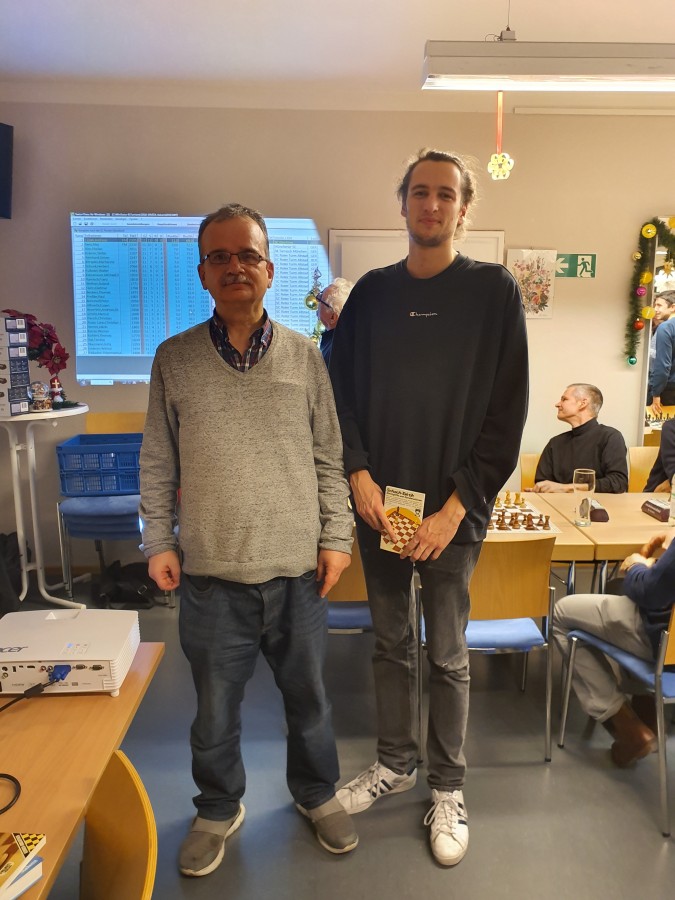 Das Jahr im Roten Turm klang aus mit dem traditionellen Adventsturnier am Mittwoch, 18. Dezember: ein Blitzturnier mit 5 Min. Bedenkzeit und 11 Runden Schweizer System, die noch ausreichend Zeit übrig ließen für die Ehrung der Vereinsmeister des vorigen Spieljahres und für alle, die in den Mannschaftskämpfen alle Runden gespielt haben und die Spieler, die die meisten Punkte eingefahren haben.