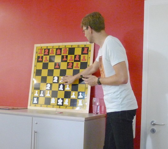 Das "L" und die "Raute" waren die zwei beherrschenden Themen, mit denen uns Simon Ritzka die Grundzüge der Springerendspiele nahe zu bringen versuchte. Ein Dutzend Spieler, unter ihnen auch Gäste, fanden den Weg nach Gern – also ein durchaus gelungener Trainingsabend.