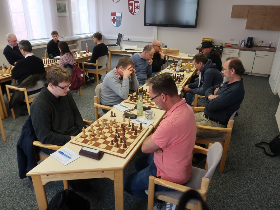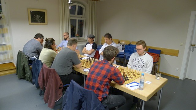 Fabian konnte eine Leichtfigur mehr sicher zum Sieg nutzen und bleibt in dieser Saison ohne Niederlage. Bogdan, für den pausierenden Volker an Brett 4, gewann ebenfalls mit einer Leichtfigur mehr und hat bei seinen drei Einsätzen die elegante Quote von 100% errungen! Armin kannte sich in der russischen Eröffnung besser aus als sein Gegner und nutze dies konsequent bis zum Matt. Michael hingegen lehnte ein Remisangebot seines Gegners trotz knapper Zeit ab, geriet schließlich in derbe Zeitnot und verlor in der Folge Nerven samt Spiel.