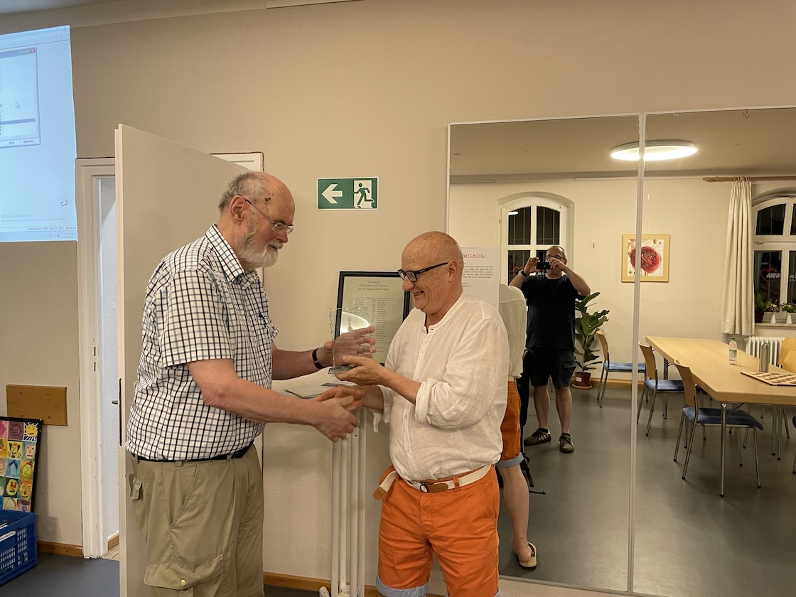 Stefan nimmt Pokal und Geldpreis in Empfang